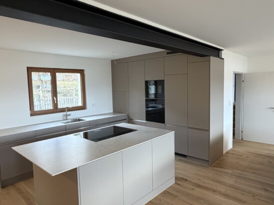 Im Zuge der Sanierung wurden Küche und Bad komplett neu gestaltet und an moderne Wohnansprüche angepasst. Durch das Entfernen der Wand zwischen Küche und Wohnraum entstand eine offene, lichtdurchflutete Küchenzone, die nun deutlich grosszügiger wirkt. Sowohl die sanitären Installationen als auch die gesamte Küchenausstattung wurden vollständig ersetzt und technisch wie optisch auf den neuesten Stand gebracht.